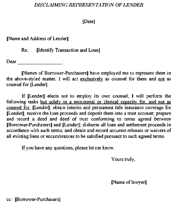 Appendix 1-1 Disclaiming Representation of Lender
