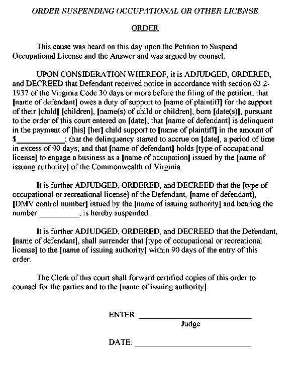 Appendix 11-11 Order Suspending Occupational or Other License