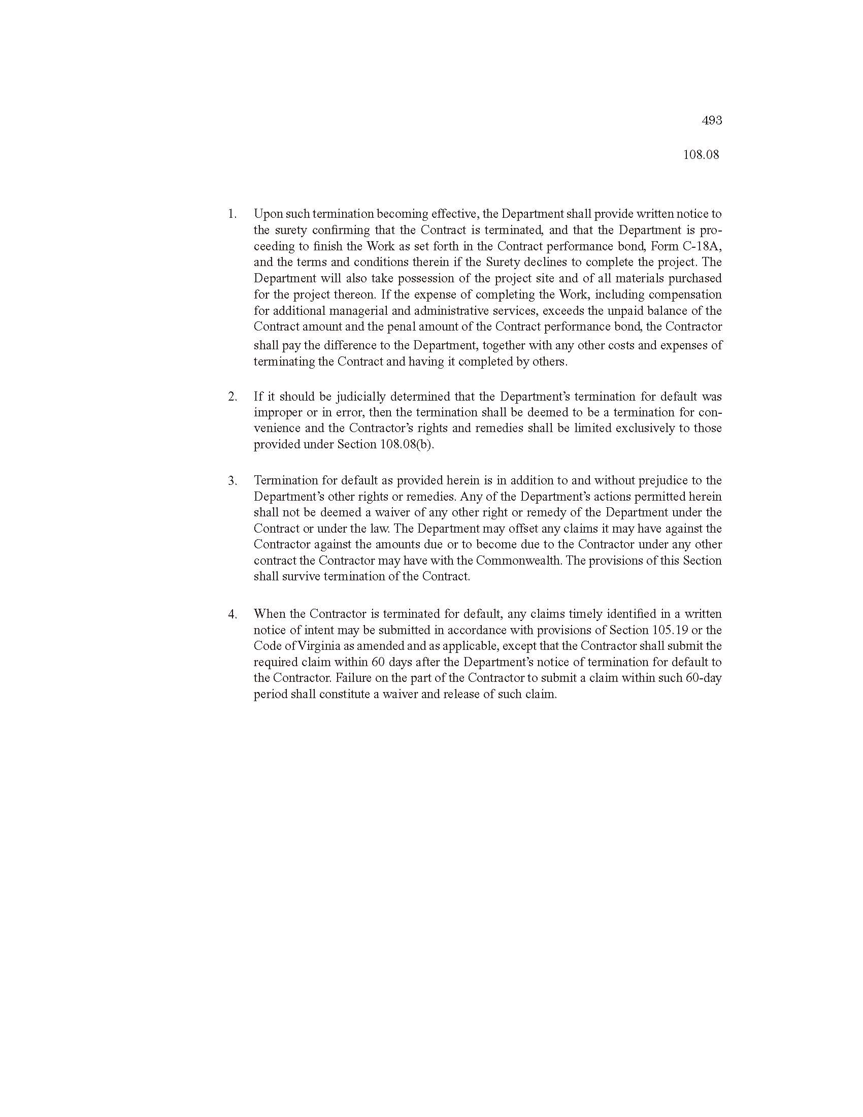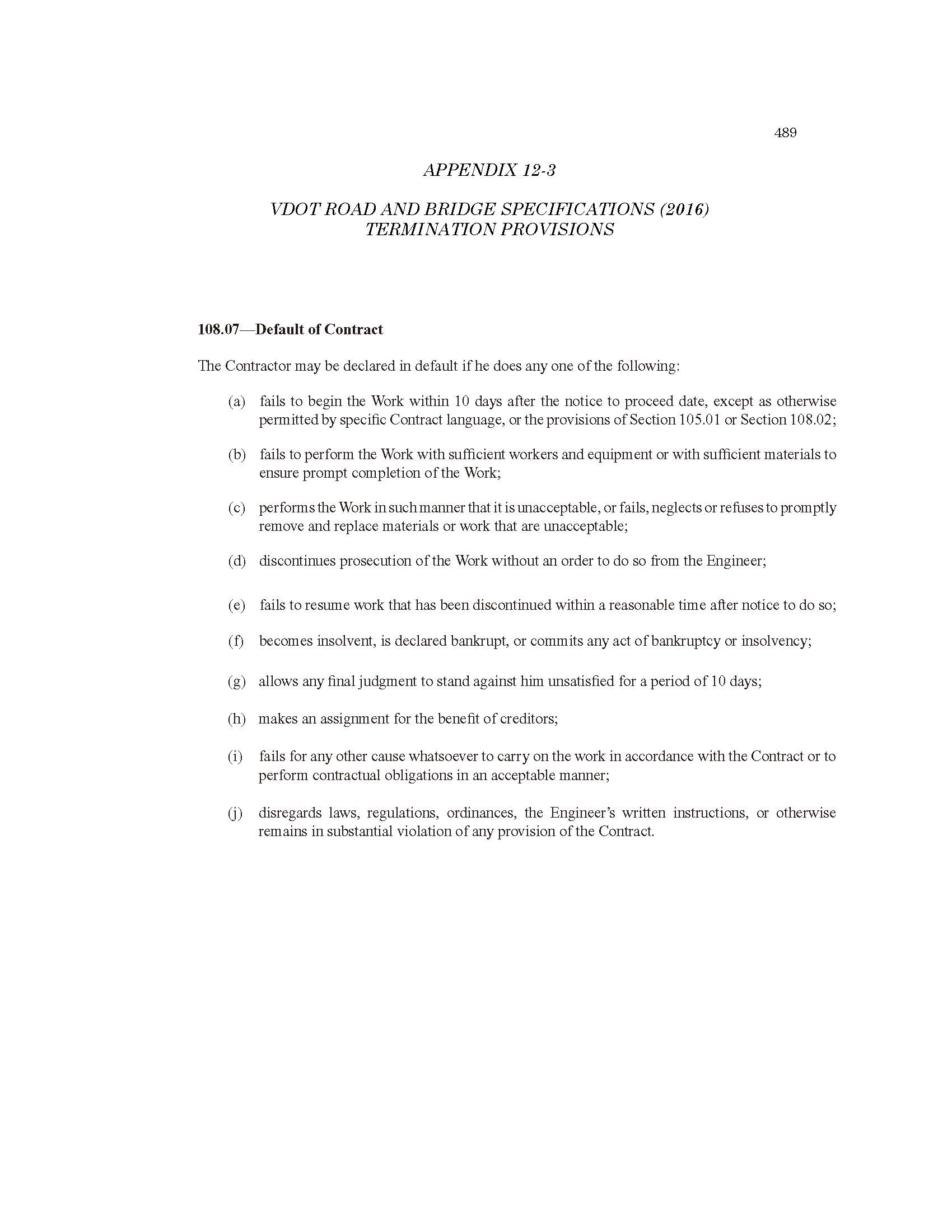 Appendix 12-3 Vdot Road and Bridge Specifications (2016) Termination Provisions