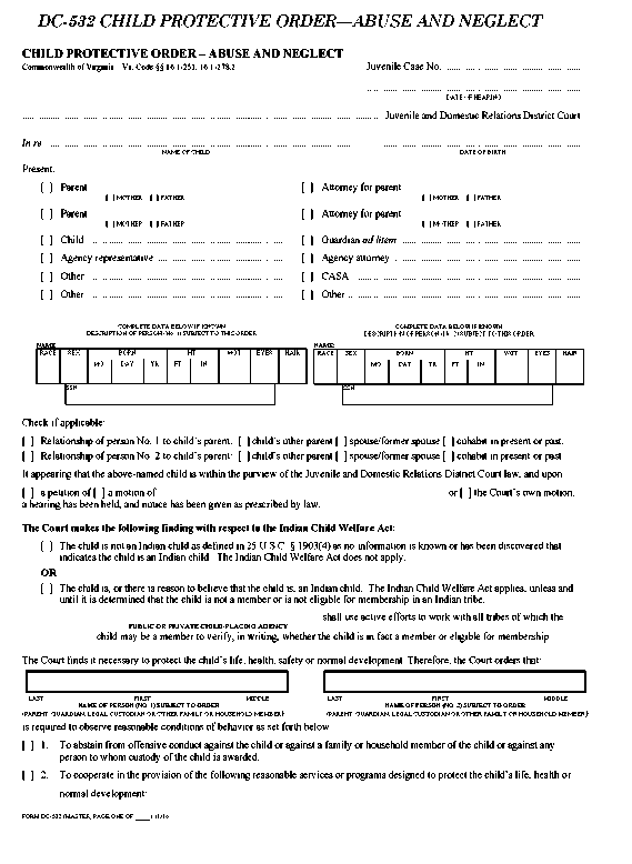 Appendix 13-8 Dc-532 Child Protective Order—abuse and Neglect