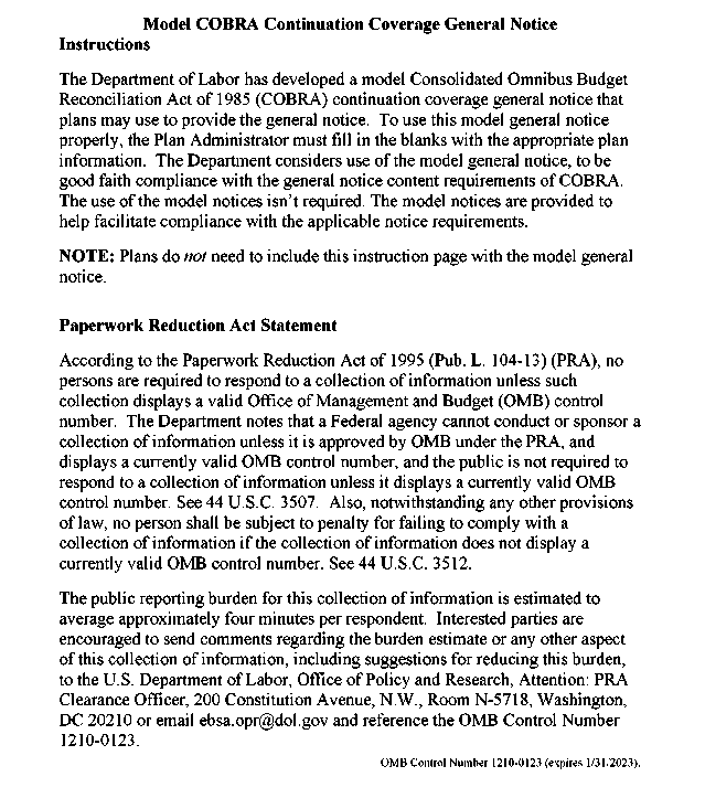Appendix 18-1 As Pdf Model Cobra Continuation Coverage General Notice