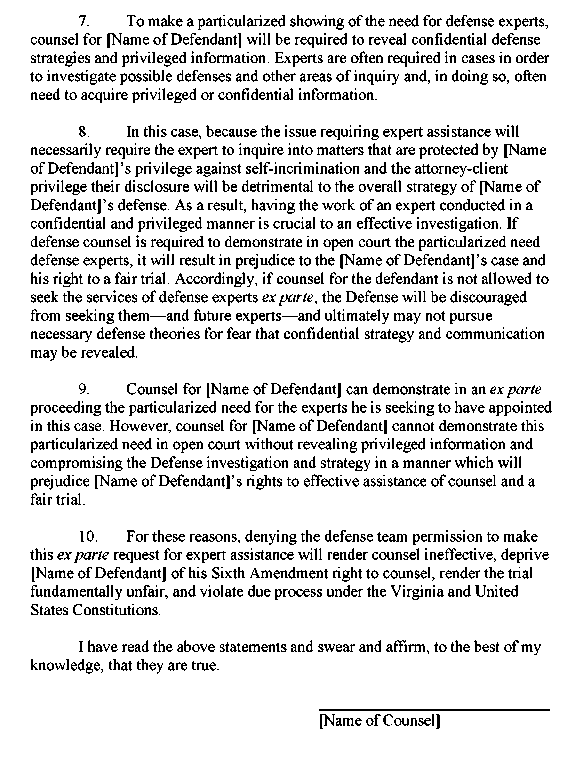 Appendix 3-13 Attorney Affidavit for Motion for Ex Parte Hearing (experts)