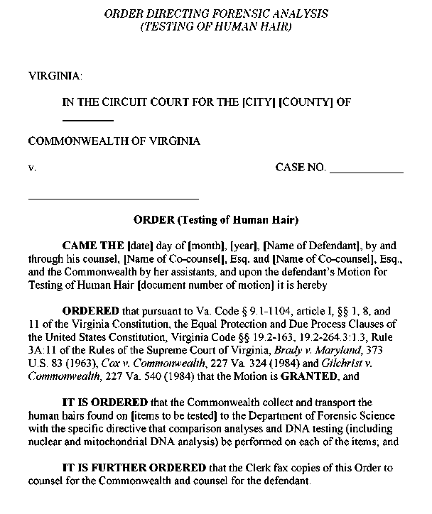 Appendix 3-19 Order Directing Forensic Analysis (testing of Human Hair)