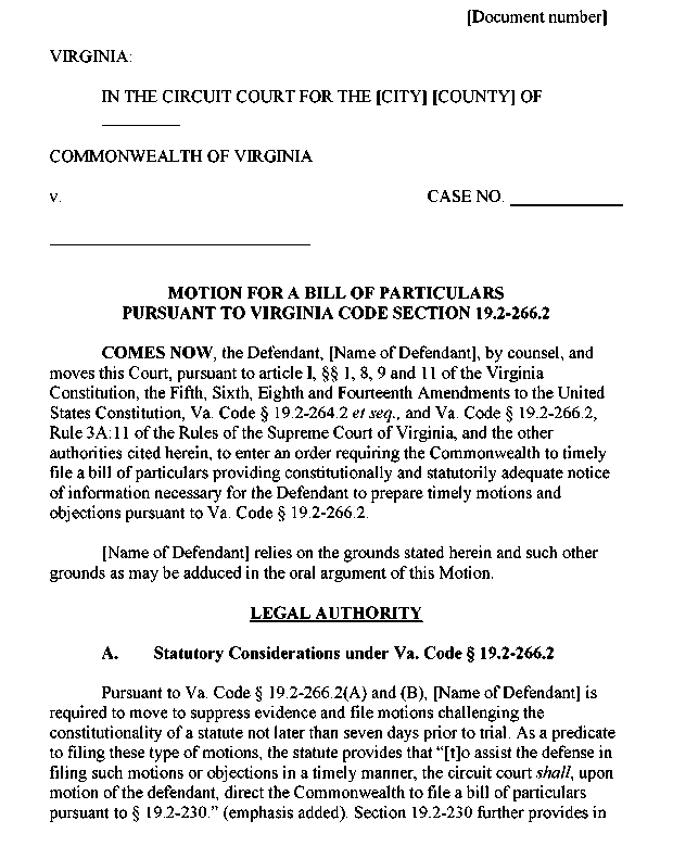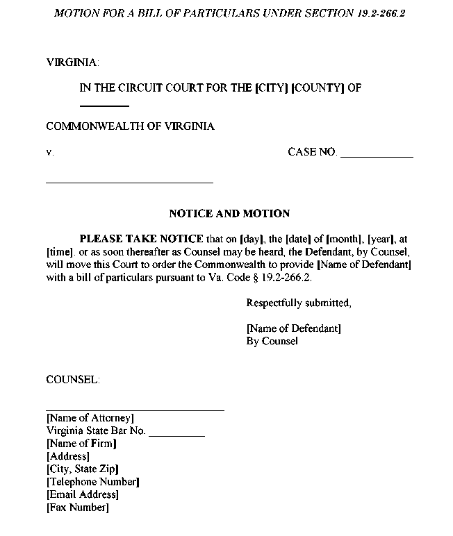 Appendix 3-6 Motion for a Bill of Particulars Under Section 19.2-266.2
