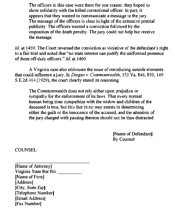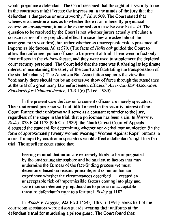 Appendix 3-8 Memorandum of Law in Support of Motion to Enjoin Law Enforcement Officers from Wearing Uniforms in the Courtroom as Spectators