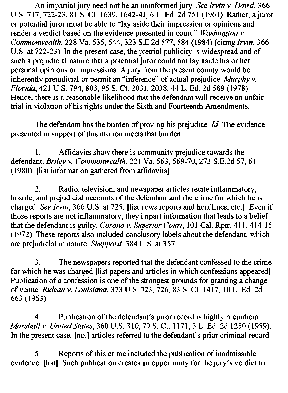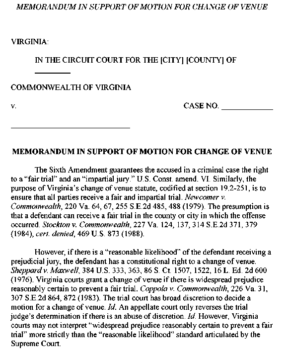 Appendix 4-2 Memorandum in Support of Motion for Change of Venue