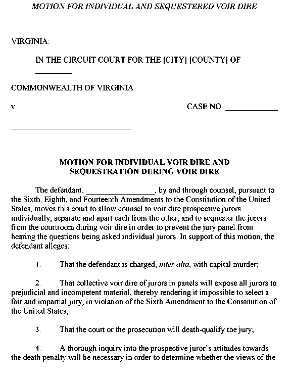 Appendix 4-3 Motion for Individual and Sequestered Voir Dire