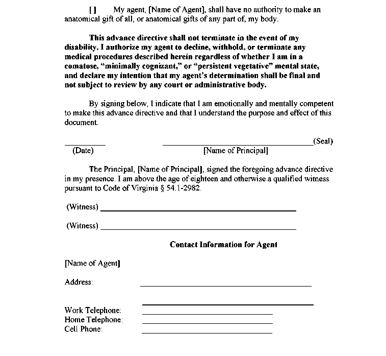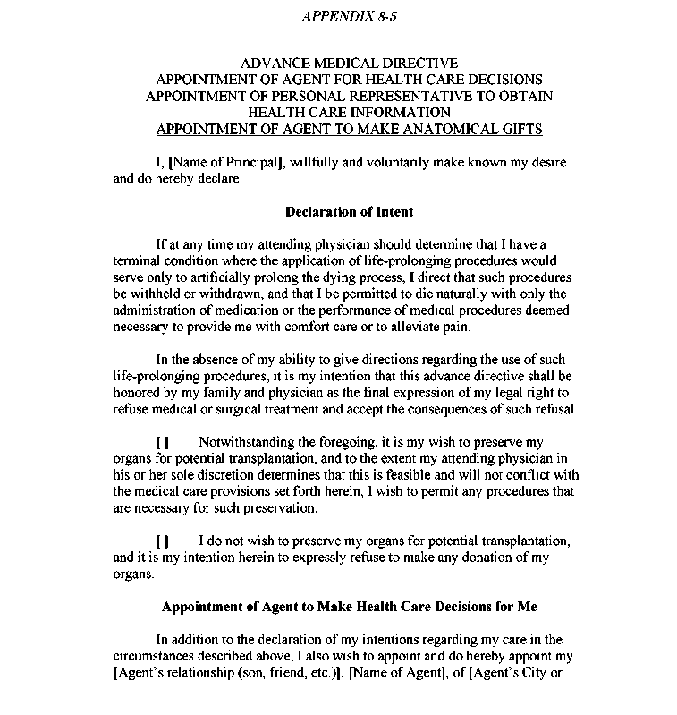 Appendix 8-5 Advance Medical Directive Appointment of Agent for Health Care Decisions Appointment of Personal Representative to Obtain Health Care Information Appointment of Agent to Make Anatomical Gifts