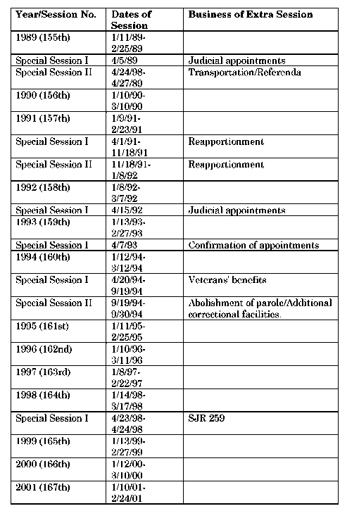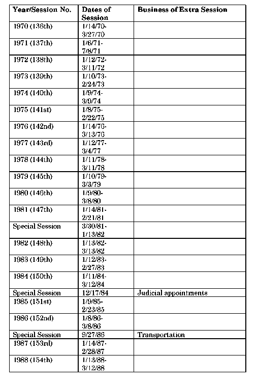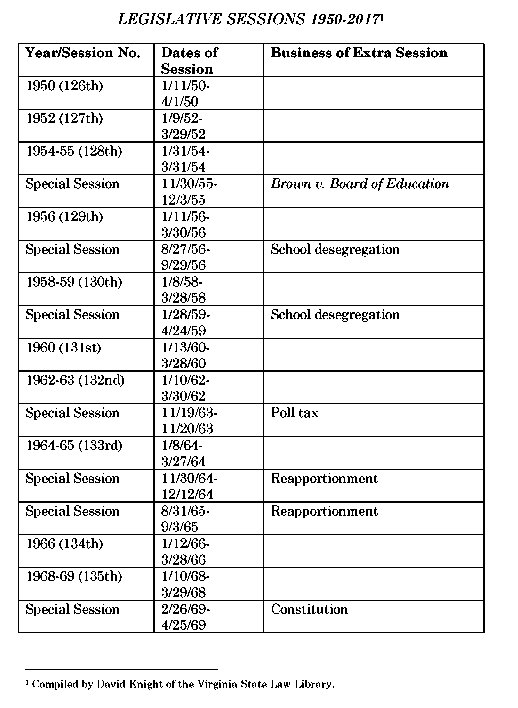 Appendix A Legislative Sessions 1950-2017
