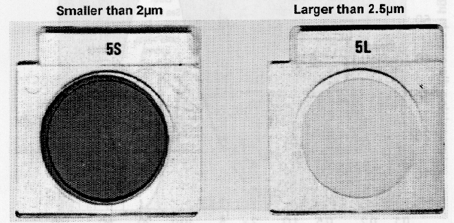 Figure 2 shows filter papers collecting particles smaller than 2µm(PM2) and larger than 2.5µm (PM2.5). The less than 2µm particles appear black, reflecting their carbonaceous, combustion origin, while those greater than PM2.5 appear grayish-white or brown, reflecting their crustal origin. The 1952 London episode data which served as the primary data for quantifying the 1987 PM10 NAAQS, measured particle "blackness" using a method called British Smoke(BS).