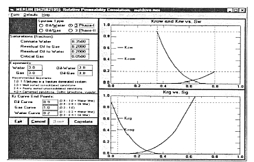When multiple saturations are present, each phase has its own effective permeability. However, the sum of these permeabilities does not add up to the single-phase effective permeability discussed above. Figure 4 shows a typical set of Relative Permeability curves. The curves are concave upwards since phases interfere with one another, resulting in lower effective permeability than expected.