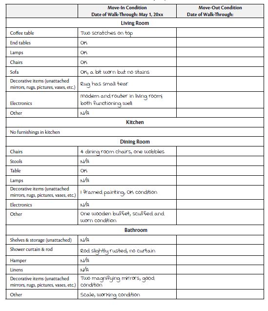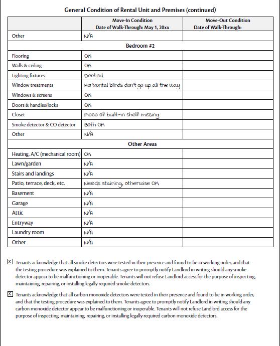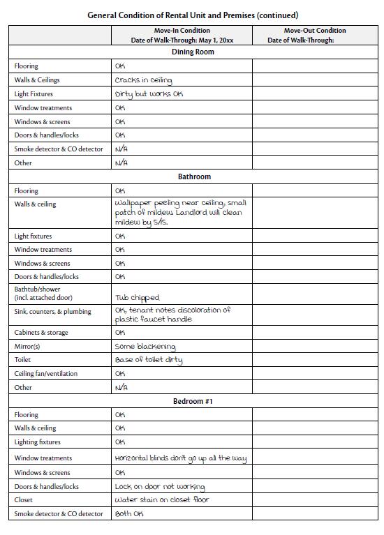 A sample Landlord-Tenant Checklist is shown below, and the Nolo website includes a customizable download. See Appendix B for the link to the forms in this book.